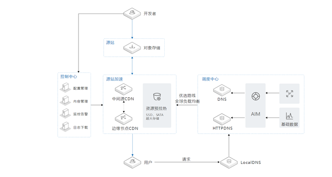 文档、影音、软件包、应用、游戏客户端等大文件的下载文档、影音、软件包、应用、游戏客户端等大文件的下载会导致源服务器需要承受非常大的负载,使用CDN能够在距离用户最近的服务器上提供需要下载的文件,以更快的速度下载需要的文件。建议搭配对象存储OSS使用,可提升回源速度。